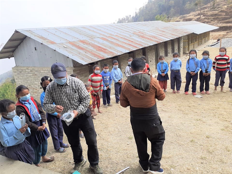 A Covid-19 Awareness Plus Covid-19 Preventive Materials distribution Program at Shree Surya Himalaya Basic School, Salambhu, Chaurideurali:3. A thermal gun and a sanitizer were provided to the school. Total 48 students and teachers were given Masks.
