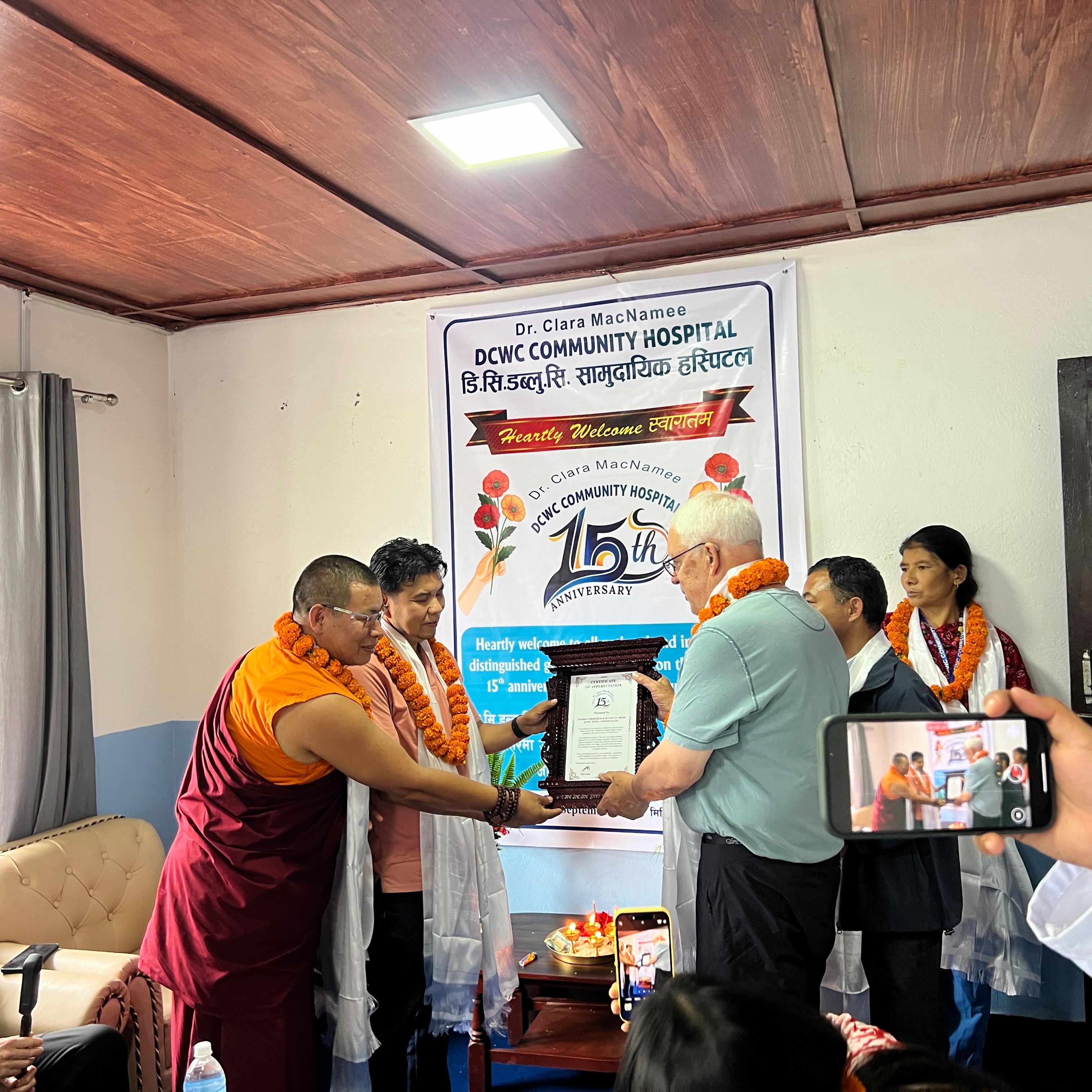 A highlight of the program was the presentation of appreciation and certificates of honor. Mr. Akka Lama, on behalf of the hospital, presented appreciation letters to the international guests in recognition of their valuable presence and goodwill. Similarly, certificates of gratitude were distributed to health posts, schools, and other organizations that have continuously supported the hospital in its mission. Land donors and supporters; Ratna Bahadur Lama, Tej Bahadur Lama, Maiya Tamangni and Hasta Bahadur Lama, whose contributions made the establishment and growth of the hospital possible, were also honored with traditional scarves and appreciation certificates.
