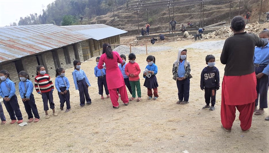 A Covid-19 Awareness Plus Covid-19 Preventive Materials distribution Program at Shree Surya Himalaya Basic School, Salambhu, Chaurideurali:3. A thermal gun and a sanitizer were provided to the school. Total 48 students and teachers were given Masks.