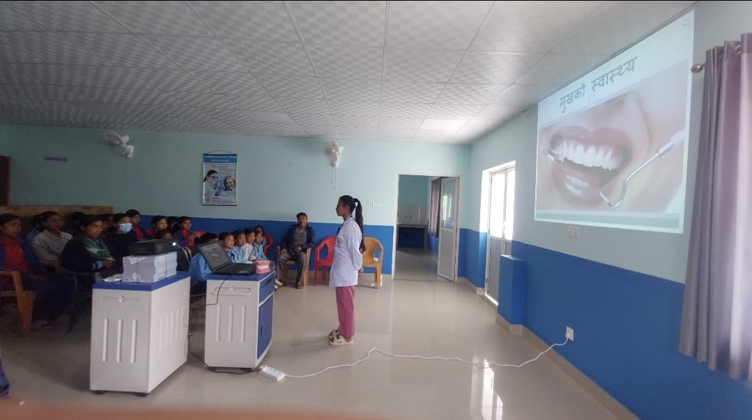 Meanwhile, in the dental department, Dr. Sabina Suwal, an experienced dental surgeon, ran a practical and interactive session on dental care. She demonstrated how to properly clean teeth, shared tips on how to keep them strong, and explained why preventive care matters so much — especially for growing children.